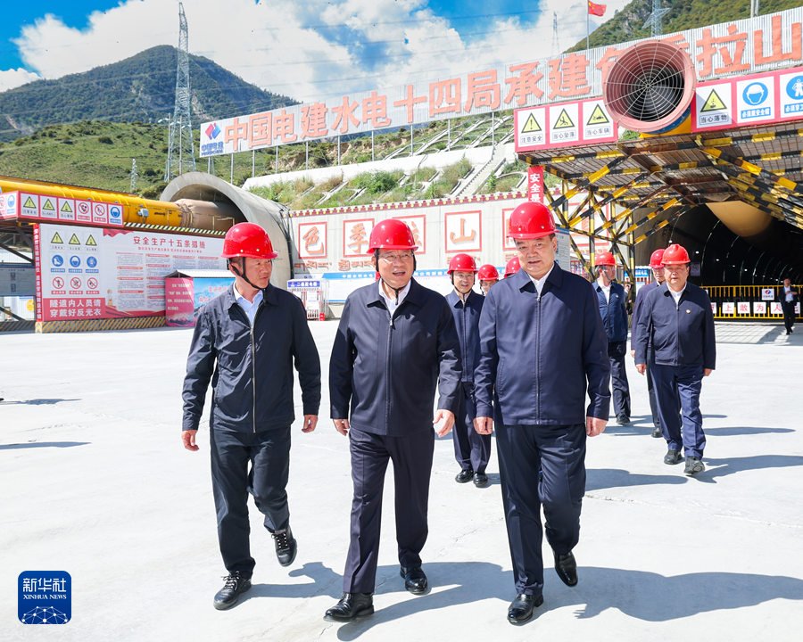 在林芝,李強(qiáng)首先來到川藏鐵路色季拉山隧道出口,察看隧道現(xiàn)場(chǎng)施工情況,了解建設(shè)進(jìn)展,與施工人員交流,對(duì)施工團(tuán)隊(duì)克服復(fù)雜地質(zhì)氣候條件艱苦作業(yè)、持續(xù)攻克工程建設(shè)難題予以高度贊許。他指出,川藏鐵路建成通車對(duì)于促進(jìn)西藏發(fā)展和民生改善意義重大。要始終把質(zhì)量和安全擺在第一位,堅(jiān)持科學(xué)有序施工,抓好全程質(zhì)量管控,確保工程經(jīng)得起歷史檢驗(yàn)。要加緊推進(jìn)電力、通信等配套設(shè)施建設(shè),做好后勤服務(wù)保障,為工程順利實(shí)施創(chuàng)造良好條件。在米林水電站壩址和雅尼濕地,李強(qiáng)察看施工裝備、鉆孔巖芯等,聽取雅魯藏布江下游水電工程開發(fā)、科技攻關(guān)、移民安置等工作匯報(bào),詳細(xì)了解濕地生態(tài)環(huán)境保護(hù)情況。他強(qiáng)調(diào),雅下水電工程體量大、周期長、影響遠(yuǎn),堪稱世紀(jì)工程。要積極應(yīng)用先進(jìn)技術(shù)、裝備、工藝、材料等,為高質(zhì)量建設(shè)提供有力支撐,并引領(lǐng)相關(guān)領(lǐng)域科技創(chuàng)新和產(chǎn)業(yè)創(chuàng)新。要格外重視生態(tài)保護(hù),確保生態(tài)環(huán)境不受損害。要細(xì)致做好移民搬遷安置工作,把推進(jìn)工程建設(shè)和促進(jìn)當(dāng)?shù)厝罕娋蜆I(yè)增收更好結(jié)合起來。要以高度的使命感和對(duì)歷史負(fù)責(zé)、對(duì)人民負(fù)責(zé)的精神,把雅下水電工程建成新時(shí)代的重大標(biāo)志性工程。