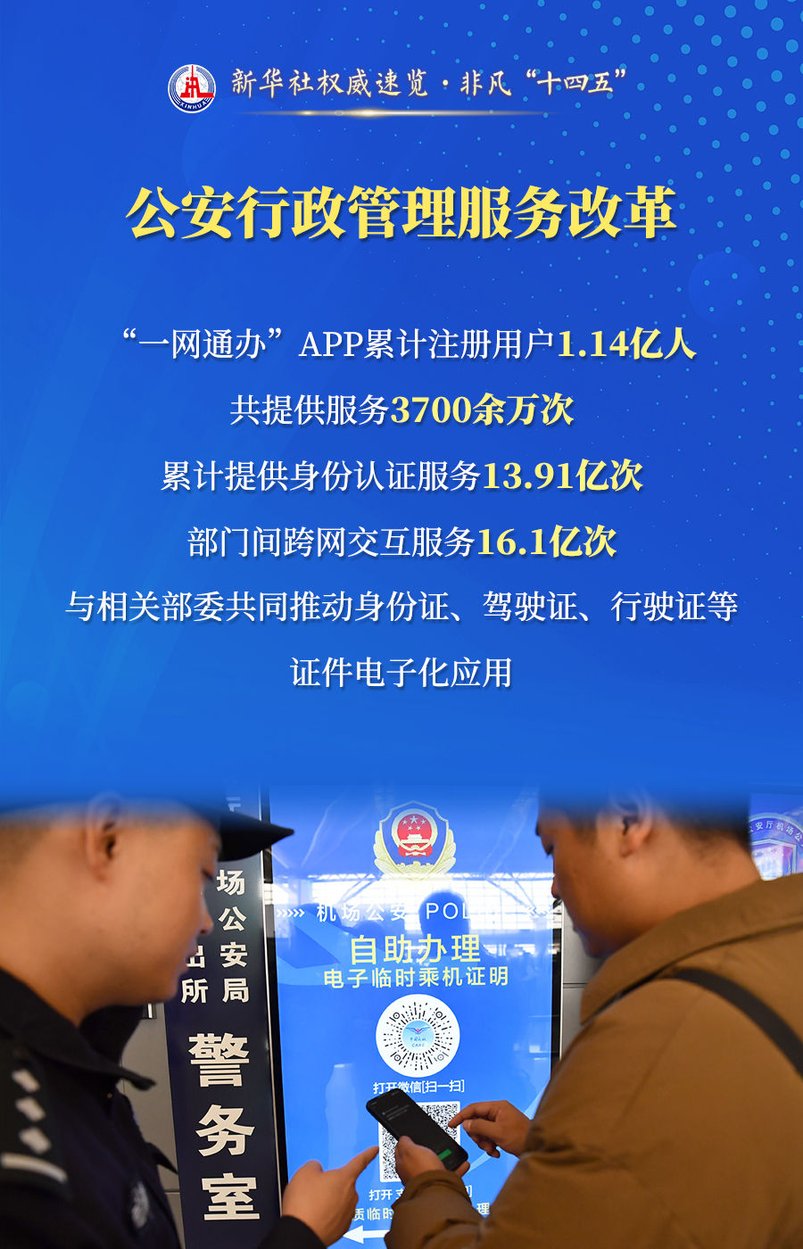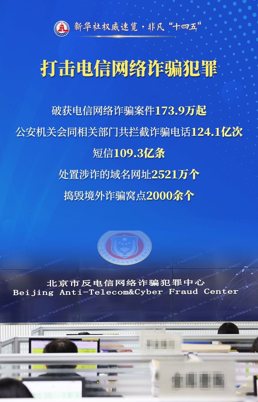 破獲電信網(wǎng)絡(luò)詐騙案件173.9萬起、推動(dòng)建立全國統(tǒng)一的人口登記管理制度、推出60多項(xiàng)改革新措施……23日舉行的“高質(zhì)量完成‘十四五’規(guī)劃”新聞發(fā)布會(huì)上,公安部介紹了以高水平安全護(hù)航“十四五”規(guī)劃高質(zhì)量完成有關(guān)情況。通過這組海報(bào),一起來看看。