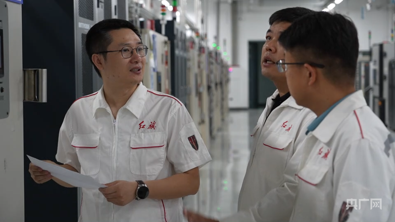 趙洪輝與同事們交流電池安全結構攻關問題(央廣網(wǎng)記者 舒震 攝)