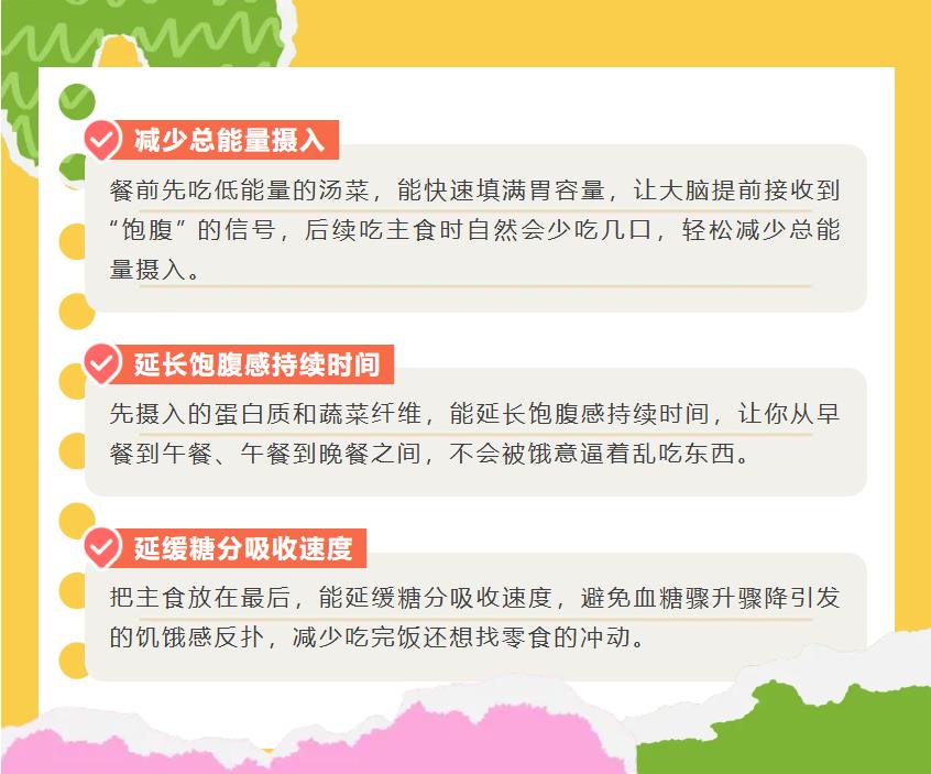 你知道嗎?吃飯時先吃什么、后吃什么,其實(shí)對健康影響不??!合理的飲食順序,能幫助我們更好地消化吸收、穩(wěn)定血糖,還能控制體重。