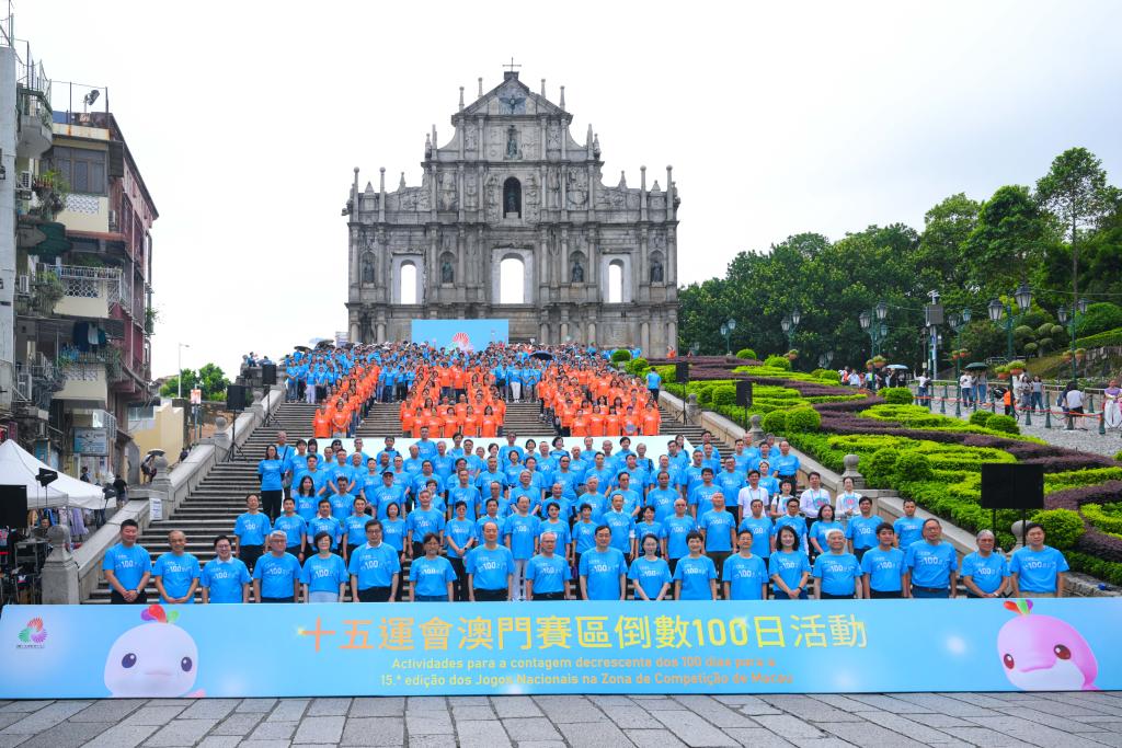 這是8月1日在澳門拍攝的第十五屆全國運(yùn)動會倒計(jì)時(shí)100天慶祝活動現(xiàn)場。新華社發(fā)(張金加攝)