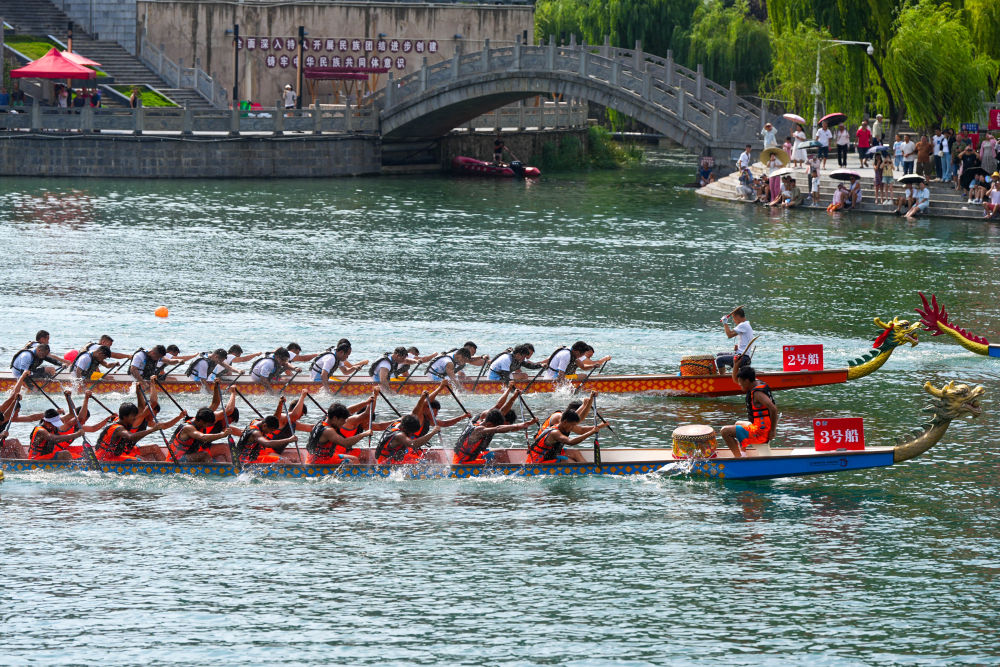 龍舟在本次世運會上首次成為正式比賽項目,這也符合世運會設(shè)項突出地域特色的特點。圖為貴州省黔東南苗族侗族自治州鎮(zhèn)遠縣?陽河上的龍舟比賽。新華社發(fā)(龍建睿攝)