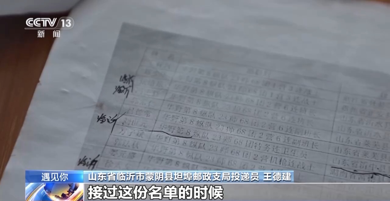 求助郵遞員王德建為龔建厚烈士尋親成功,讓張景憲看到了通過(guò)書(shū)信為烈士尋親的希望。于是,他把一份寫(xiě)有93名烈士信息的名單交給了王德建,讓他幫忙尋找名單上的臨沂籍烈士親屬。
