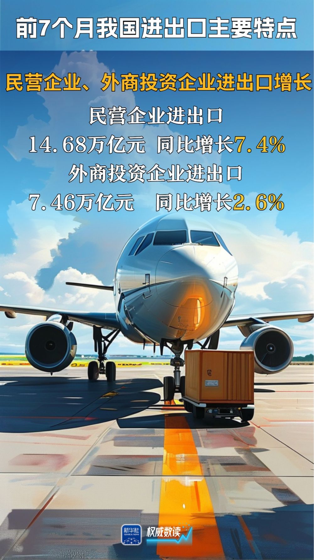 海關(guān)總署7日發(fā)布數(shù)據(jù)顯示,今年前7個月,我國貨物貿(mào)易進(jìn)出口總值25.7萬億元人民幣,同比增長3.5%。面對復(fù)雜外部環(huán)境,我國外貿(mào)運(yùn)行保持向上向好勢頭,經(jīng)濟(jì)運(yùn)行穩(wěn)中有進(jìn)。