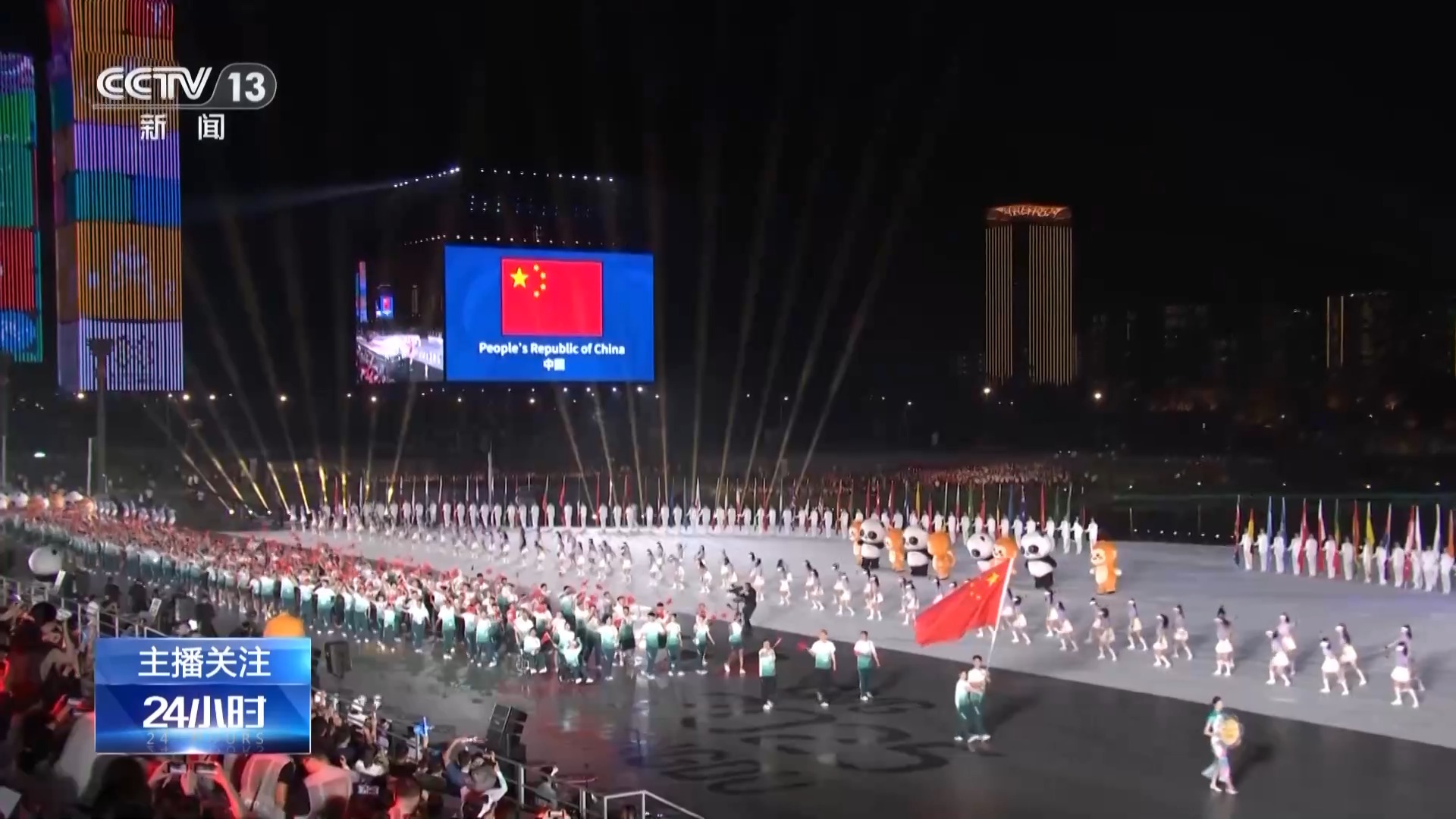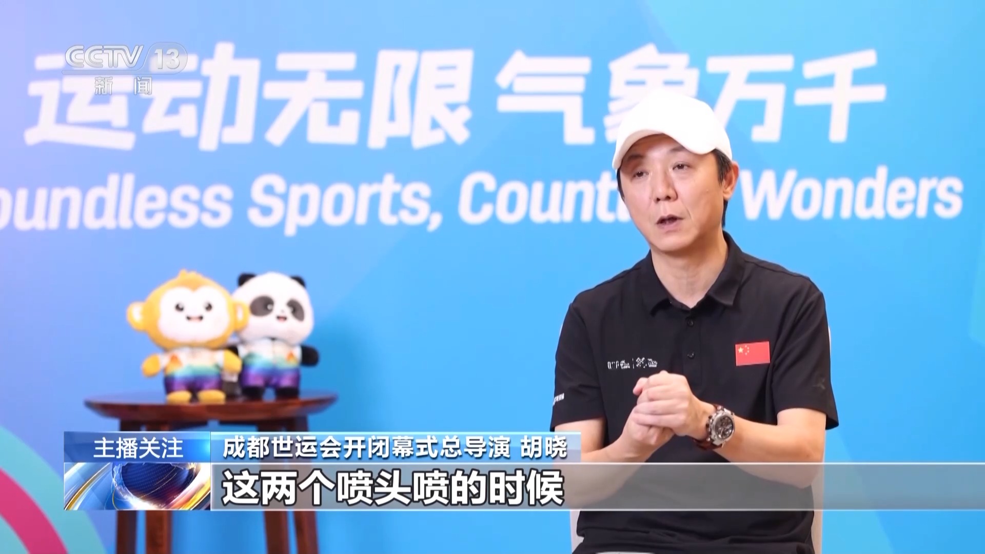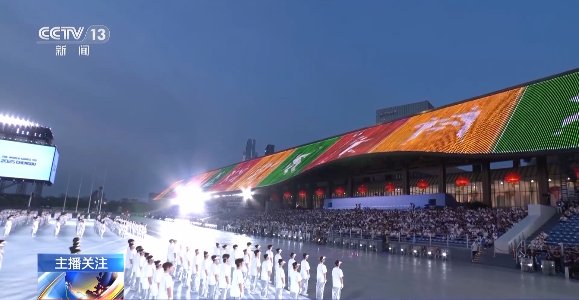 成都世運(yùn)會(huì)開(kāi)閉幕式總制作人 王銳祥:等于那個(gè)舞臺(tái)是180度。以往在一個(gè)體育場(chǎng)館里面的舞臺(tái)有聚焦點(diǎn),但在戶(hù)外,基本上人所看到的舞臺(tái)層面,都要表達(dá),所以這個(gè)是考驗(yàn)我們導(dǎo)演、舞美、燈光師在聚焦點(diǎn),怎么把我們的觀眾拉回這個(gè)舞臺(tái)上。如果沒(méi)有一個(gè)很強(qiáng)烈的細(xì)節(jié)感受,沒(méi)有辦法把觀眾的細(xì)節(jié)拉回中心舞臺(tái)。
