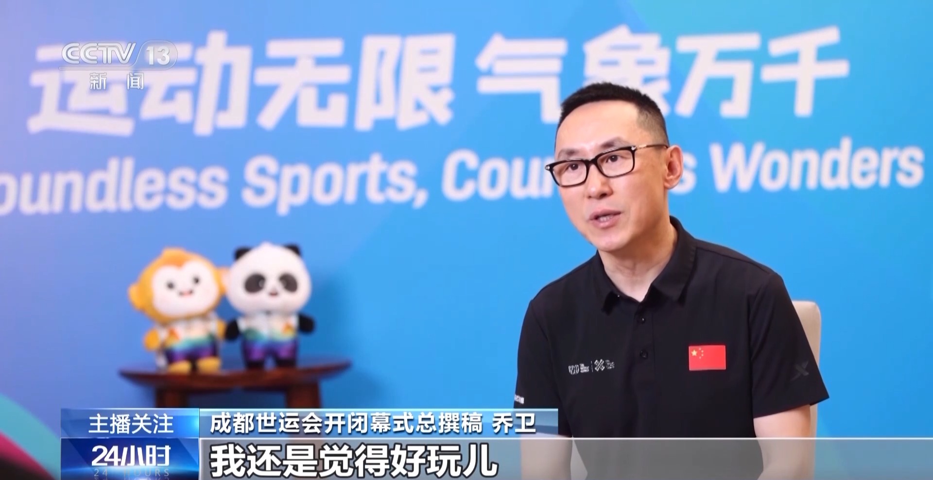 成都世運(yùn)會(huì)開(kāi)閉幕式總撰稿 喬衛(wèi):如果用一個(gè)詞來(lái)概括的話(huà),我覺(jué)得好玩兒。希望這一屆世運(yùn)會(huì)的開(kāi)幕式是好玩兒的。其實(shí)我們不僅僅展現(xiàn)的是體育運(yùn)動(dòng)能夠彰顯生命特質(zhì)的一面,其實(shí)也展現(xiàn)了成都這座城市更活躍、更有創(chuàng)新感、更加有聲趣感的真正風(fēng)貌。
