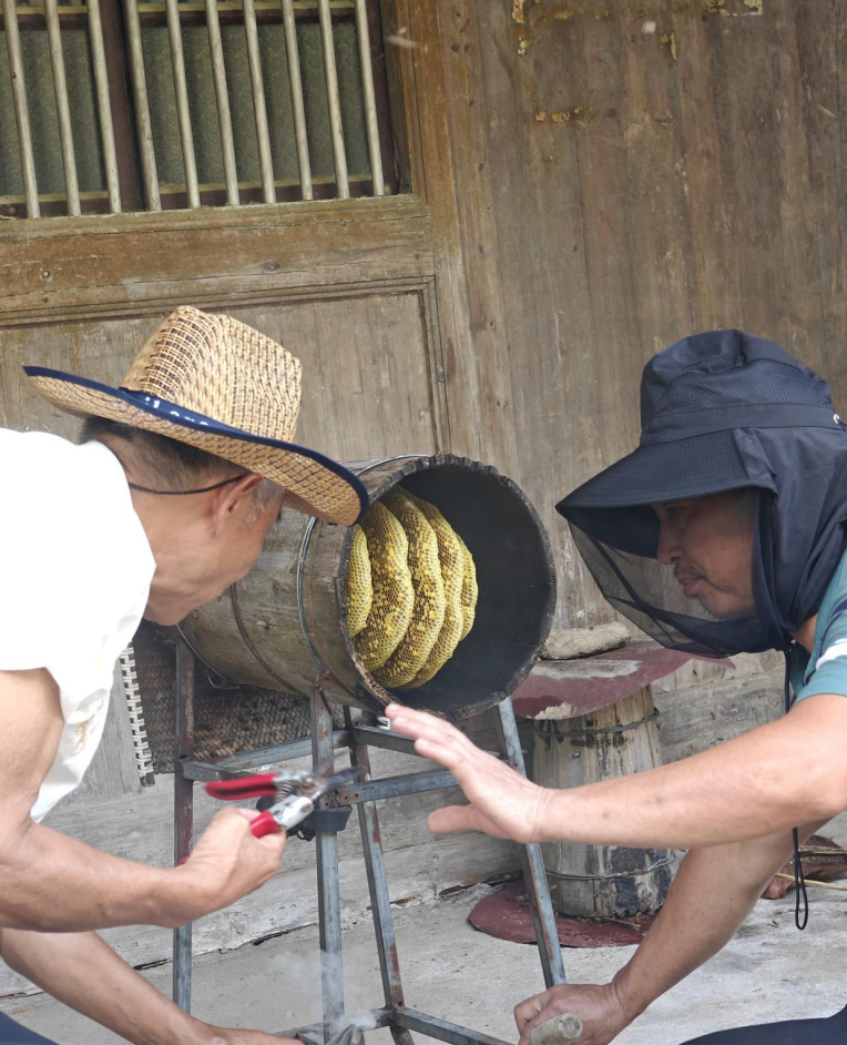 臺州仙居縣林坑村,蜂農張建平的蜂蜜收割,吸引了不少人駐足觀賞。