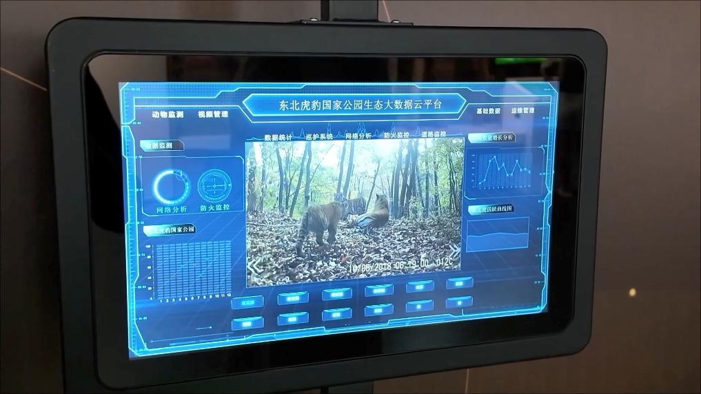 在吉林省琿春東北虎豹自然科普館,東北虎豹國家公園的“天空地一體化監(jiān)測體系”通過智能紅外相機、衛(wèi)星遙感、無人機等技術,回傳野生動物活動影像。