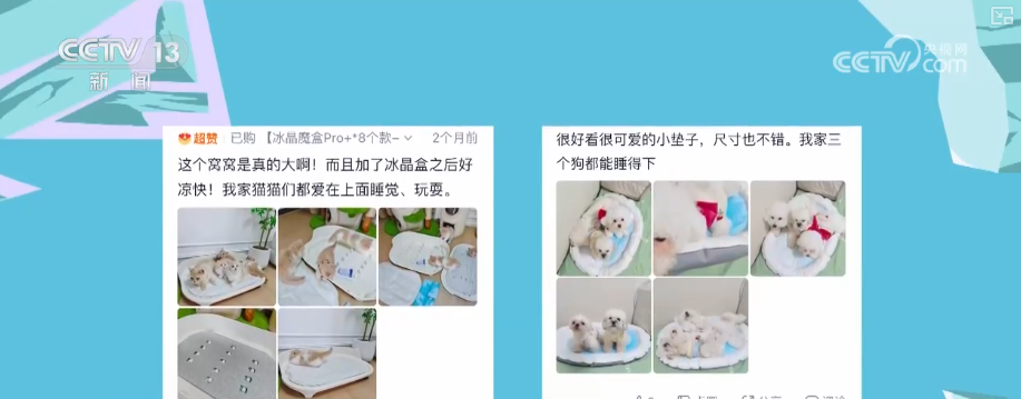 高溫還催熱了“它經濟”。在網購平臺上搜索關鍵詞“寵物降溫”,寵物空調房、冰墊、冰絲圍巾、寵物專用空調等商品琳瑯滿目。一件30塊錢左右的基礎款寵物冰墊,月銷量輕松破萬??烧{節(jié)風速的寵物風扇、能自動制冷的寵物窩等,同樣備受追捧。評論區(qū)的畫風是這樣的“狗狗非常喜歡,玩得不亦樂乎”“貓咪睡覺終于踏實了”“家里的娃和毛孩子都很喜歡”。