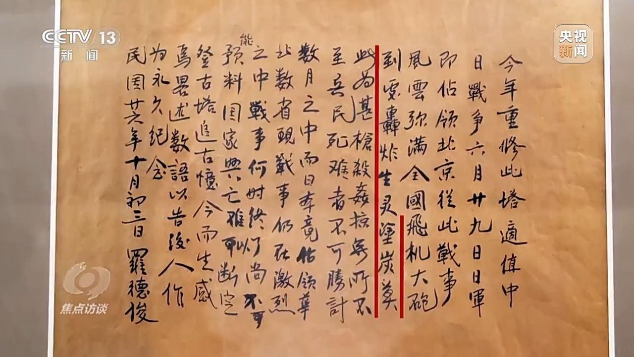 今年是中國(guó)人民抗日戰(zhàn)爭(zhēng)暨世界反法西斯戰(zhàn)爭(zhēng)勝利80周年。在這場(chǎng)決定人類(lèi)命運(yùn)的偉大斗爭(zhēng)中,中國(guó)作為東方主戰(zhàn)場(chǎng),以3500萬(wàn)同胞傷亡的沉重代價(jià),為世界反法西斯事業(yè)作出了不可磨滅的歷史貢獻(xiàn)。為銘記這段用鮮血和生命鑄就的壯麗史詩(shī),《焦點(diǎn)訪談》推出特別節(jié)目“歷史照耀今天”。今天,我們首先重返1931年九一八事變的歷史現(xiàn)場(chǎng),揭開(kāi)中國(guó)人民14年不屈抗戰(zhàn)的序幕。
