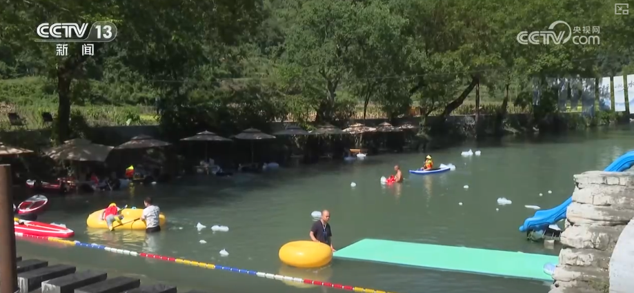在湖南吉首,洽比河旅游公路串聯(lián)起深山中的9個(gè)傳統(tǒng)苗寨。游客們自駕而來,沿河溯溪露營(yíng),體驗(yàn)水上項(xiàng)目,或躲進(jìn)竹椅遮陽傘下,感受清涼愜意。