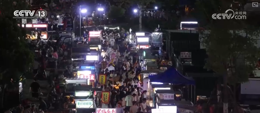 每天,當夜幕降臨,天門北湖夜市就會準時“開攤”,300多個攤位依次亮起霓虹招牌,香氣繚繞,叫賣聲此起彼伏。記者行走其中,發(fā)現(xiàn)一個比夜市更引人注目的一個現(xiàn)象,就是穿梭其中的年輕父母格外多,還有不少二孩甚至是三孩家庭。