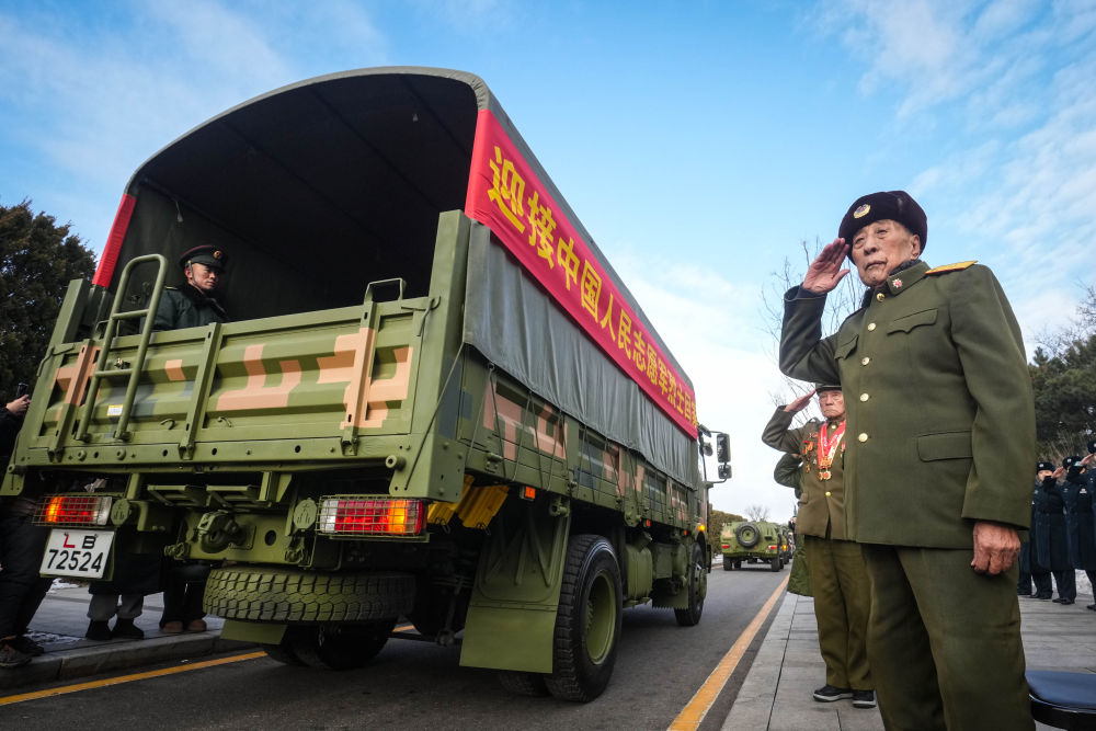 2024年11月28日,第十一批在韓中國人民志愿軍烈士遺骸回國。運送志愿軍烈士遺骸的車輛駛向沈陽抗美援朝烈士陵園。新華社記者 潘昱龍 攝