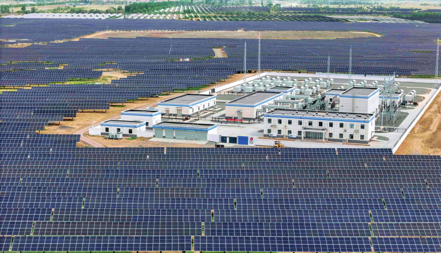 新疆生產(chǎn)建設(shè)兵團(tuán)第八師石河子市的一處100萬千瓦光伏基地(2024年5月14日攝)胡虎虎攝/本刊