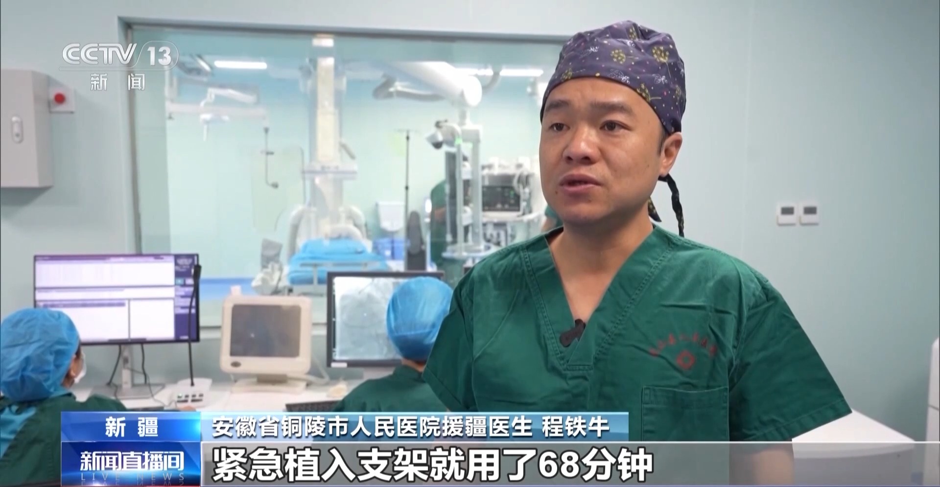 安徽省銅陵市人民醫(yī)院援疆醫(yī)生 程鐵牛:緊急植入支架就用了68分鐘。心內(nèi)科急診有個“黃金90分鐘”,現(xiàn)在我們終于把這條生死線前移了一千里!