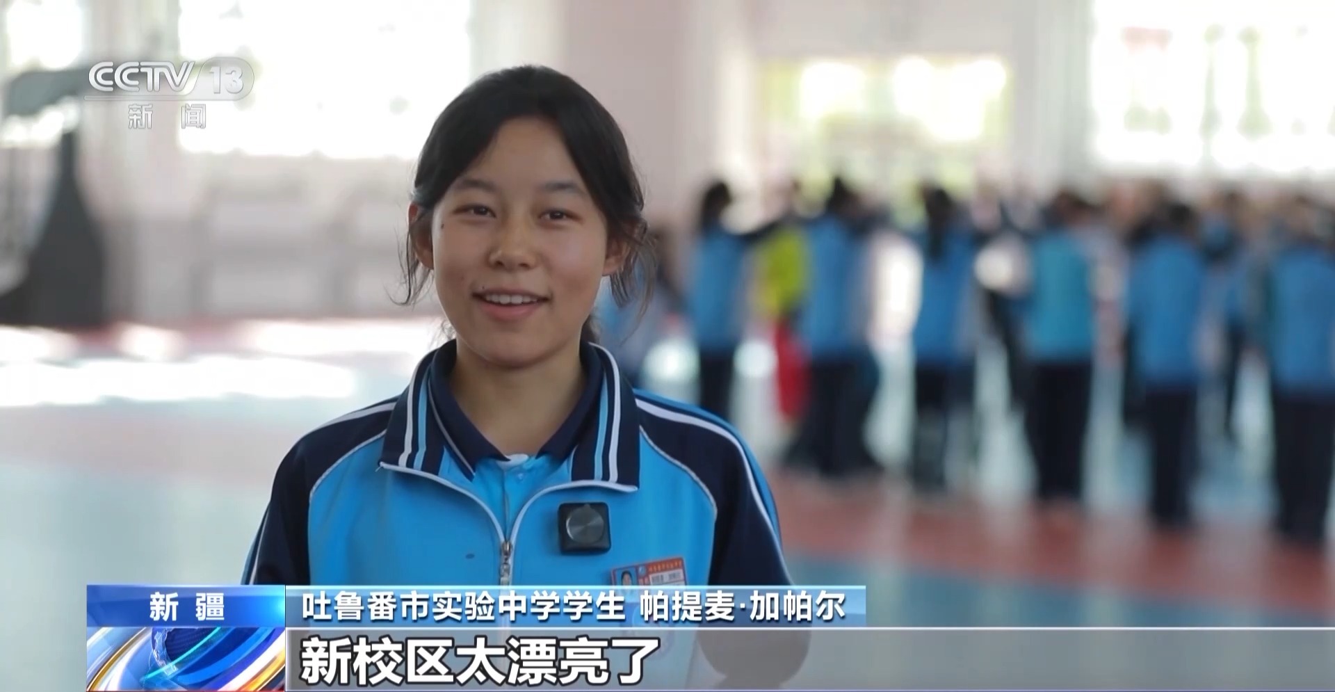 吐魯番市實驗中學(xué)學(xué)生 帕提麥·加帕爾:新校區(qū)太漂亮了,在這里我現(xiàn)在學(xué)習(xí)勁頭兒十足,已經(jīng)愛上這里的生活了。