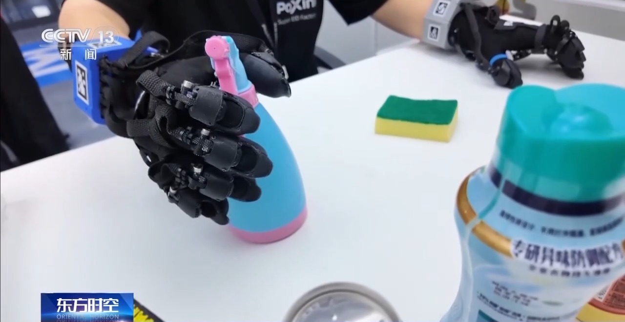 就像大語言模型依賴大規(guī)模文本語料,機器人要從“會想”邁向“會做”,同樣離不開海量真實世界的經(jīng)驗數(shù)據(jù)做訓(xùn)練。能實時記錄觸覺、力覺和動作細(xì)節(jié)的特制“數(shù)采手套”,就是連接真實世界和數(shù)據(jù)世界的介質(zhì)。