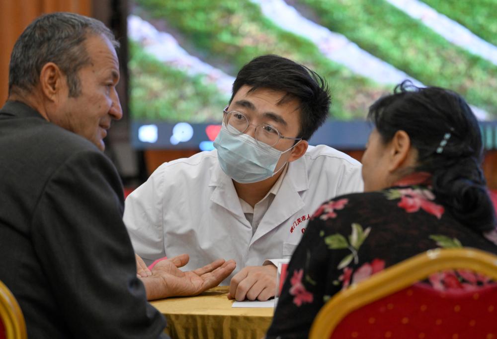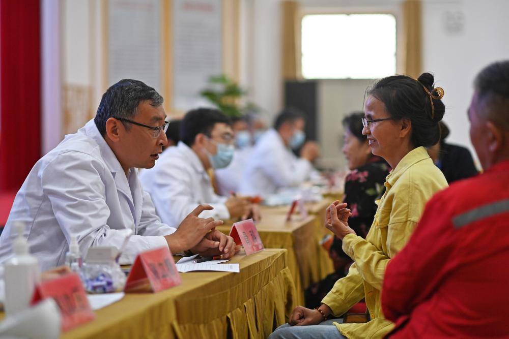 9月19日,鐵門關(guān)市人民醫(yī)院醫(yī)生在達西村為村民義診。