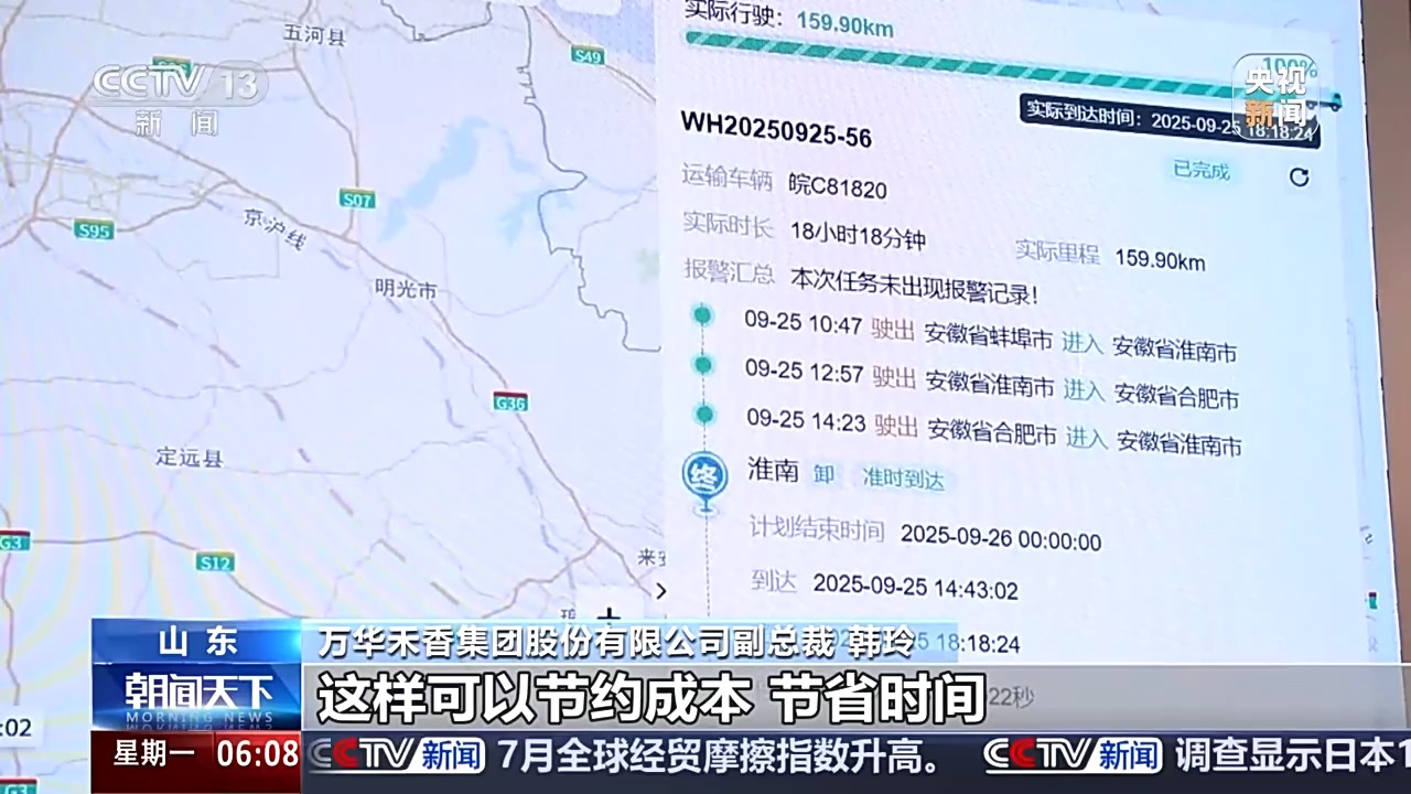 萬華禾香集團(tuán)股份有限公司副總裁 韓玲:對于固定的線路,我們有大量的數(shù)據(jù)支撐之后,方便我們的司機(jī)對整個(gè)運(yùn)輸?shù)木€路做一個(gè)最佳路徑的選擇,這樣可以節(jié)約成本,節(jié)省時(shí)間。