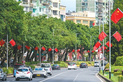 圖為澳門(mén)街頭披上“中國(guó)紅”,喜迎國(guó)慶和中秋佳節(jié)。圖片來(lái)源:澳門(mén)特區(qū)政府新聞網(wǎng)