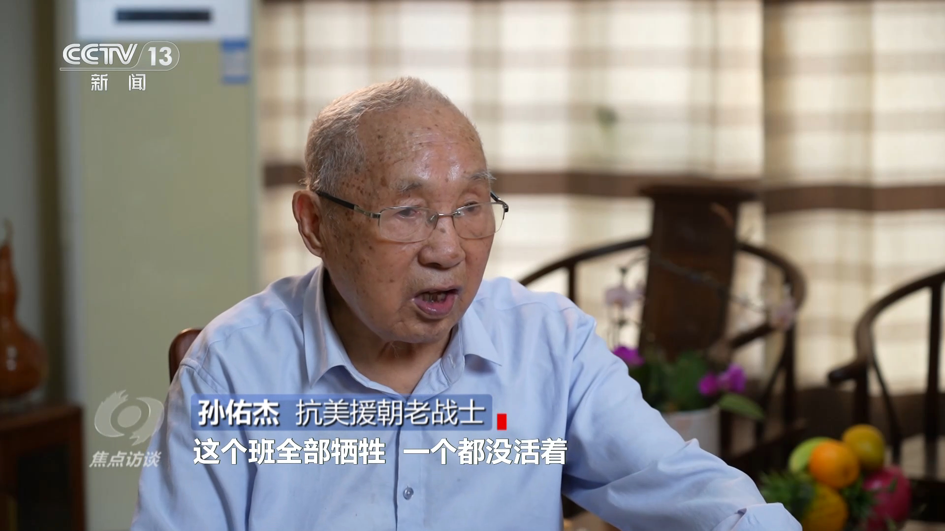 抗美援朝老戰(zhàn)士孫佑杰:“一班班長領(lǐng)著大家討論吃苦的價值,班長說我們今天在這里吃苦,流血犧牲是有價值的,等我們打敗了美帝國主義的侵略以后,我們的祖國強大了,人們的生活會更加美好,到那時候就會樓上樓下電燈電話,想吃面包就吃面包,想喝牛奶就喝牛奶,天天像過年一樣。”
