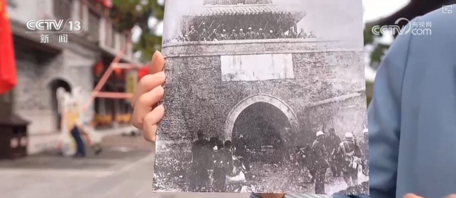 莒國古城里到處都是喜氣洋洋、熱鬧非凡。這張?zhí)厥獾恼掌【暗鼐褪窃谶@里,這是當(dāng)年莒城解放戰(zhàn)后的情形,戰(zhàn)士們登上了城樓,定格下了這份來之不易的勝利。