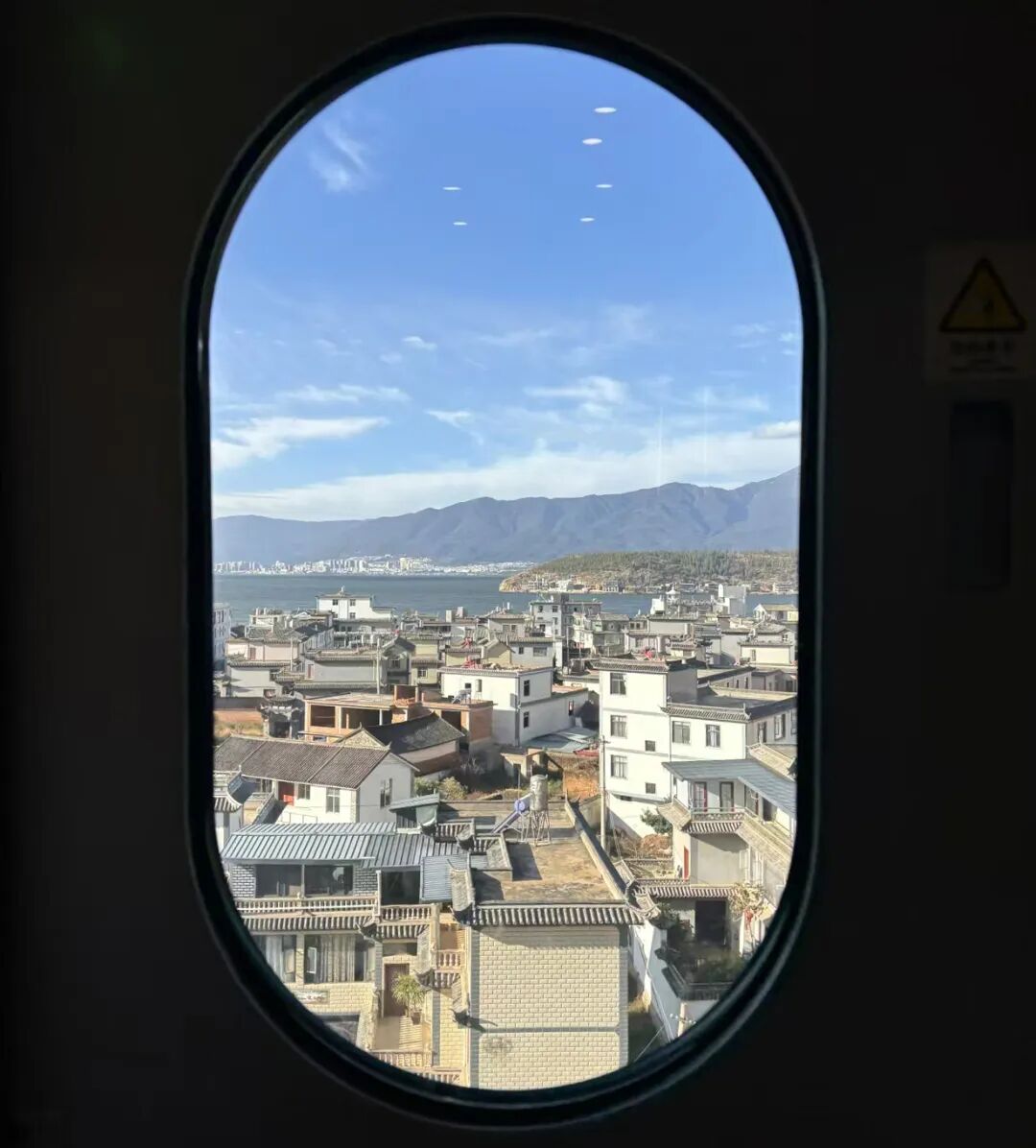 列車載著風穿行,車窗恰似畫框,將大理的詩意牢牢框住。澄澈藍天如被水洗過的藍綢,洱海似一汪碎了的藍寶石,在日光下漾著粼粼波光,遠處青山如黛,靜默相依。近處,白墻黛瓦的村落像從時光深處走來的精靈,挨挨擠擠。屋頂?shù)木€條或平直或微翹,似在無聲訴說著歲月故事。隔著車窗,也能感受到“詩和遠方”,真叫人沉醉在這旅途中的“大理藍”里。(作者:李婭姣)