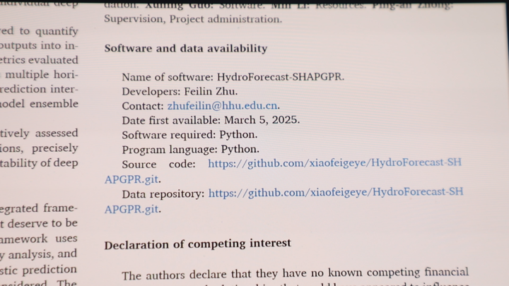 朱非林在學(xué)術(shù)研究中有一個(gè)特別的堅(jiān)持——公開(kāi)分享自己的代碼。早在2017年,他就將防洪決策的模型代碼公開(kāi),美國(guó)、印度及國(guó)內(nèi)的學(xué)者紛紛與他聯(lián)系,在他開(kāi)發(fā)的模型基礎(chǔ)上進(jìn)行深化研究,推動(dòng)了整個(gè)方向的發(fā)展。"水利行業(yè)是造福人民的事業(yè),不應(yīng)該有圍墻。"朱非林的想法很簡(jiǎn)單,一項(xiàng)技術(shù)只有被更多人使用、檢驗(yàn)和完善,才能發(fā)揮更大價(jià)值,更快推動(dòng)整個(gè)行業(yè)進(jìn)步。個(gè)人的工作如果能給其他研究者或工程單位帶來(lái)啟發(fā)和幫助,其意義就遠(yuǎn)超一篇論文本身。