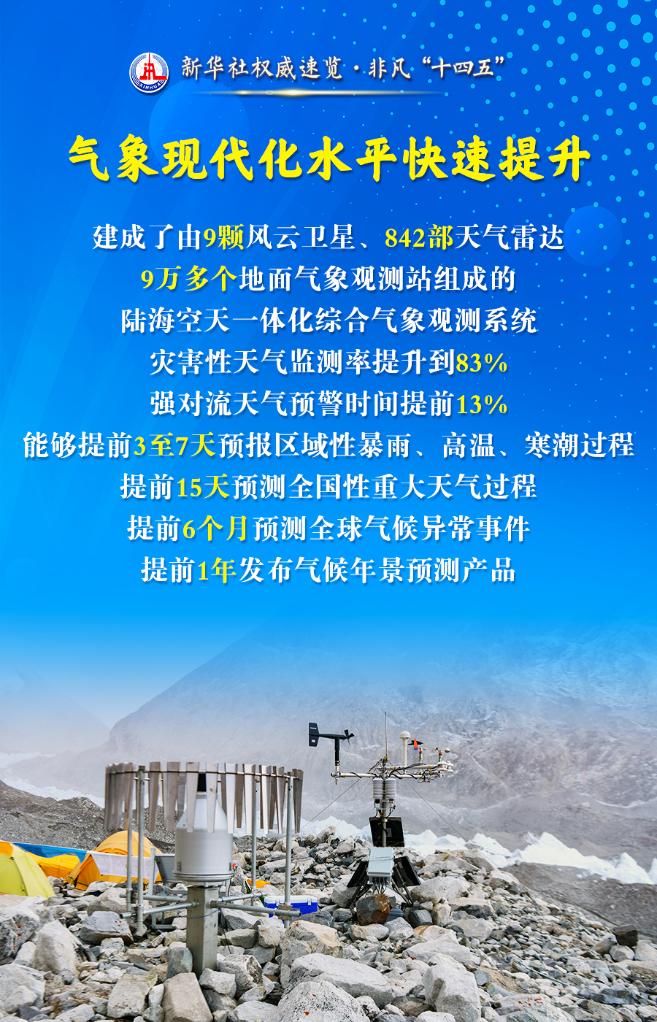 氣象事業(yè)是科技型、基礎性、先導性社會公益事業(yè)。10月11日,中國氣象局局長陳振林在國新辦舉行的“高質量完成‘十四五’規(guī)劃”發(fā)布會上說,氣象部門加快推進氣象科技能力現(xiàn)代化和社會服務現(xiàn)代化,努力構建科技領先、監(jiān)測精密、預報精準、服務精細、人民滿意的現(xiàn)代氣象體系。跟隨海報,一起了解。