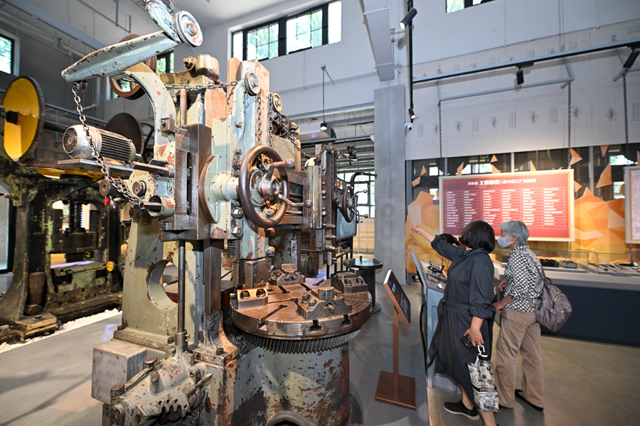 2025年5月18日,游客在天津機床工業(yè)博物館內參觀機床設備。新華社記者 孫凡越 攝