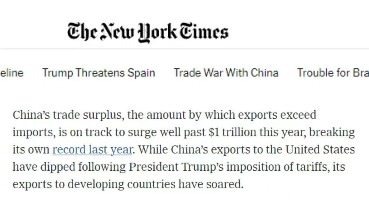 美國(guó)《紐約時(shí)報(bào)》的文章分析稱,強(qiáng)勁的出口和對(duì)新工廠的持續(xù)投資使中國(guó)經(jīng)濟(jì)在夏季保持穩(wěn)定增長(zhǎng)。中國(guó)的出口投資以及用國(guó)產(chǎn)商品取代進(jìn)口的政策繼續(xù)推動(dòng)著經(jīng)濟(jì)增長(zhǎng)。與去年同期相比,商品貿(mào)易順差在過(guò)去三個(gè)月中增加了12.4%。中國(guó)的貿(mào)易順差今年有望超過(guò)1萬(wàn)億美元,主要得益于中國(guó)對(duì)發(fā)展中國(guó)家的出口激增。