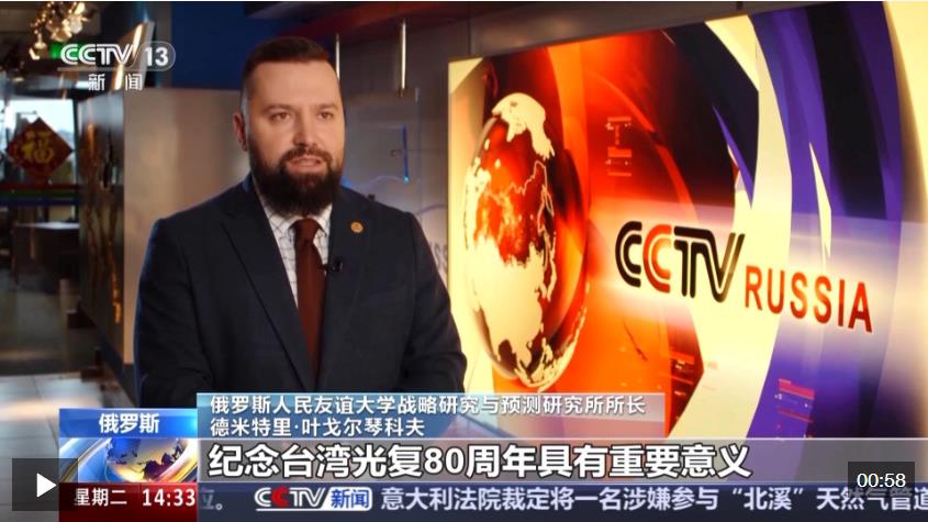 俄羅斯人民友誼大學戰(zhàn)略研究與預測研究所所長 德米特里·葉戈爾琴科夫:紀念臺灣光復80周年具有重要意義,象征著中國人民心向統(tǒng)一。戰(zhàn)勝日本軍國主義是世界反法西斯戰(zhàn)爭的重要組成部分,這一歷史應該被銘記?! ?img alt="" src="http://resource.sjzdaily.com.cn/files/Resource/phpad/images/2510/28/1949157733906719.jpg" />