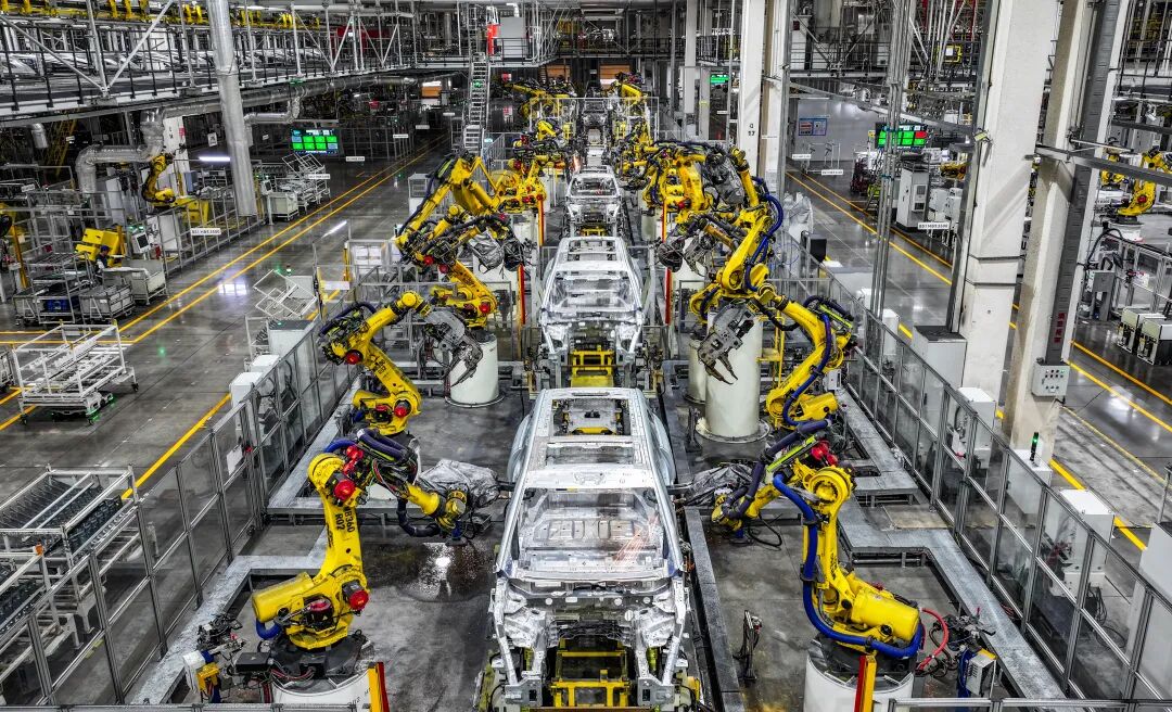 位于重慶市兩江新區(qū)的賽力斯汽車超級(jí)工廠拍攝的自動(dòng)化生產(chǎn)作業(yè)現(xiàn)場。 新華社記者 王全超 攝