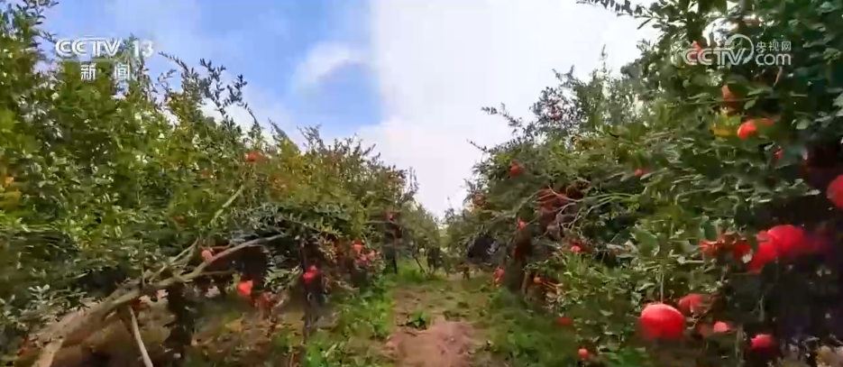 眼下,新疆伽師縣的2.4萬畝石榴迎來豐收季,連片果園里,飽滿的石榴掛滿枝頭,仿佛一串串的“火紅燈籠”。