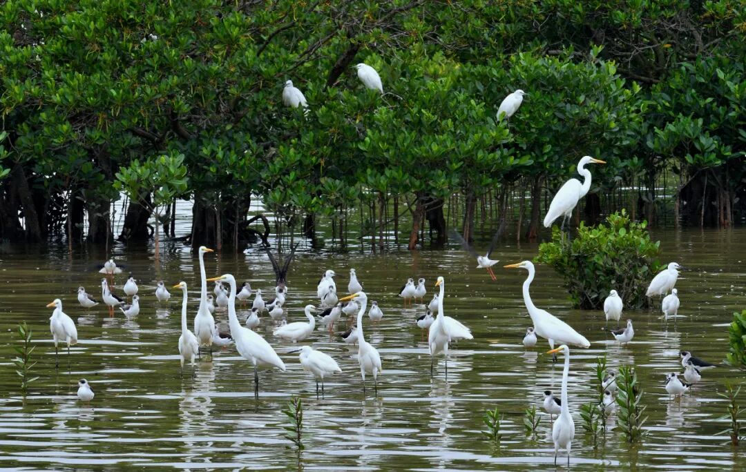在福田紅樹林生態(tài)公園觀賞候鳥