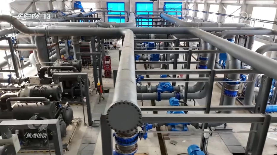 地?zé)崮茉凑臼钦麄€清潔熱源項目的樞紐。地?zé)崴畯牡叵?500米抽上來,要先在地?zé)崮茉凑咎崛崃?,再用這些熱量加熱自來水,然后把加熱好的水通過管道送到居民家實現(xiàn)供暖。往百姓家送水的出水口溫度高低,直接決定了居民家里暖不暖。