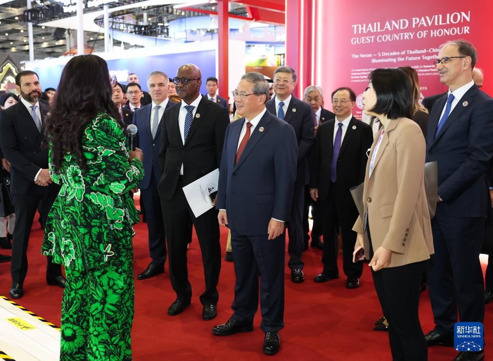 開幕式前,李強(qiáng)參觀了企業(yè)展。開幕式后,李強(qiáng)同與會外國領(lǐng)導(dǎo)人共同巡館。