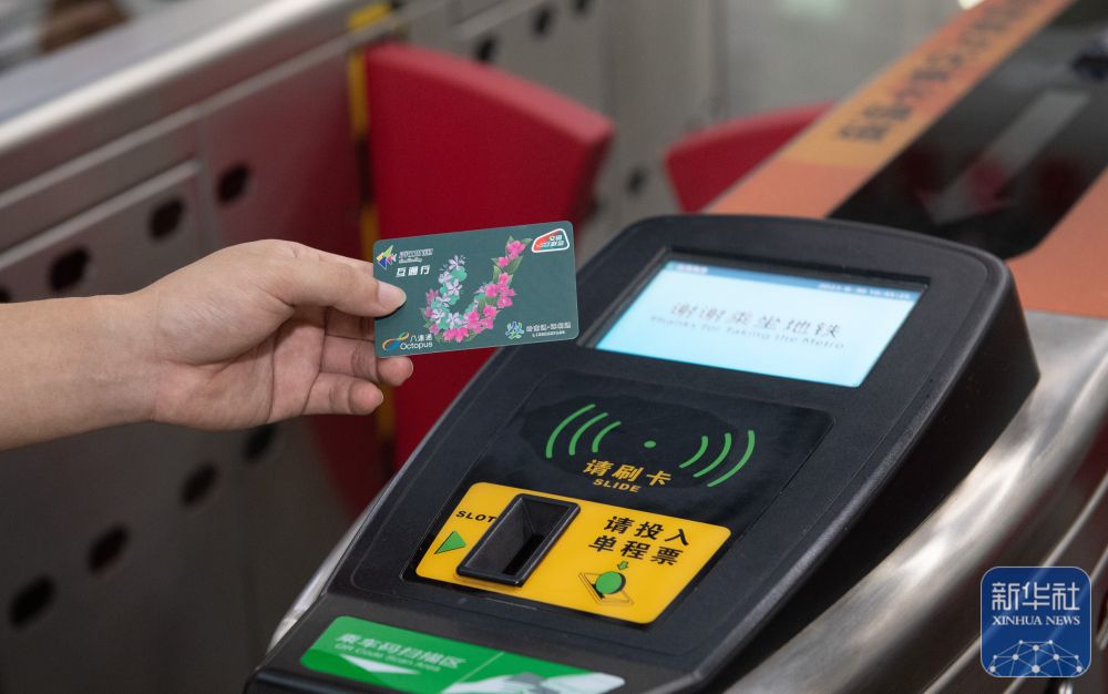 ↑在深圳福田站地鐵閘機(jī)出口,用戶持深港互通行卡準(zhǔn)備刷卡(2023年8月30日攝)。新華社記者 毛思倩 攝