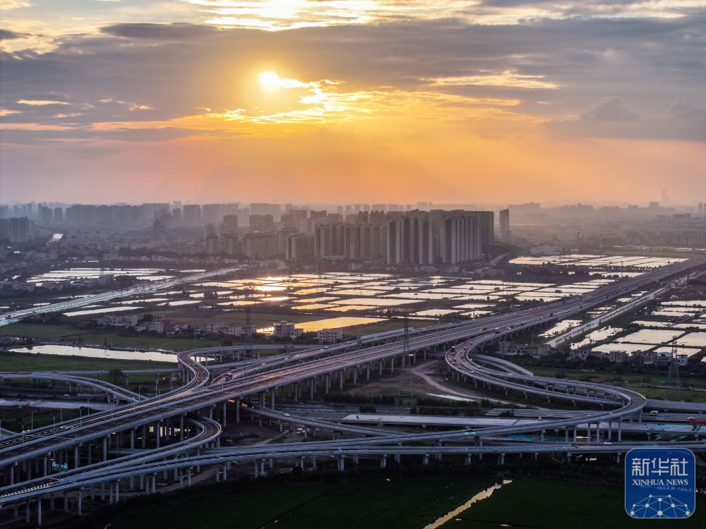 ↑沐浴在落日余暉里的南中高速新隆互通(2024年10月17日攝,無(wú)人機(jī)照片)。南中高速橫跨廣州、中山兩市,南通珠海、西進(jìn)江門、東達(dá)深圳,串聯(lián)起粵港澳大灣區(qū)核心區(qū)域東西南北大通道。通車后從廣州南沙15分鐘可至中山城區(qū),20分鐘可達(dá)深圳寶安。新華社記者 劉大偉 攝