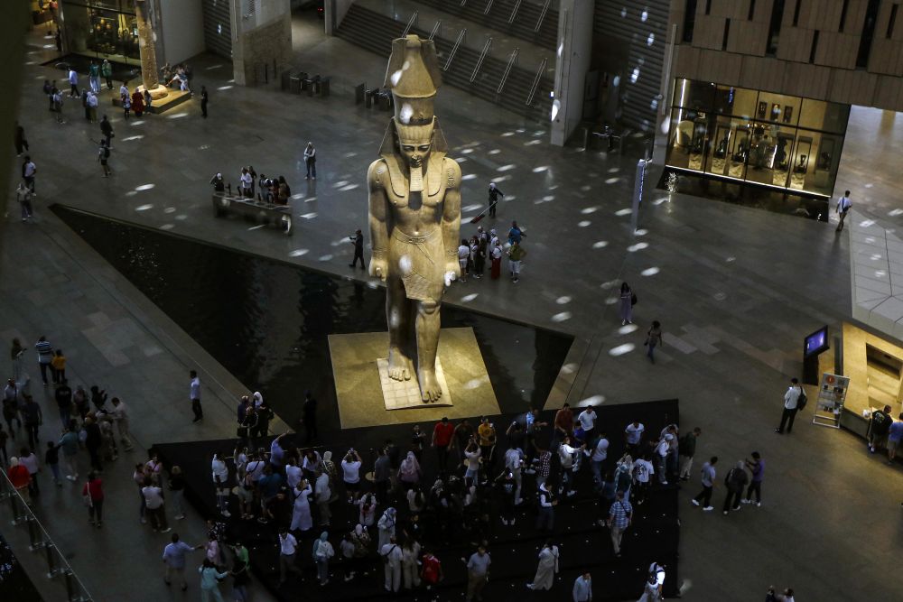 11月4日,大埃及博物館正式向公眾開(kāi)放。這是古埃及法老拉美西斯二世巨像。新華社發(fā)(艾哈邁德·戈馬攝)