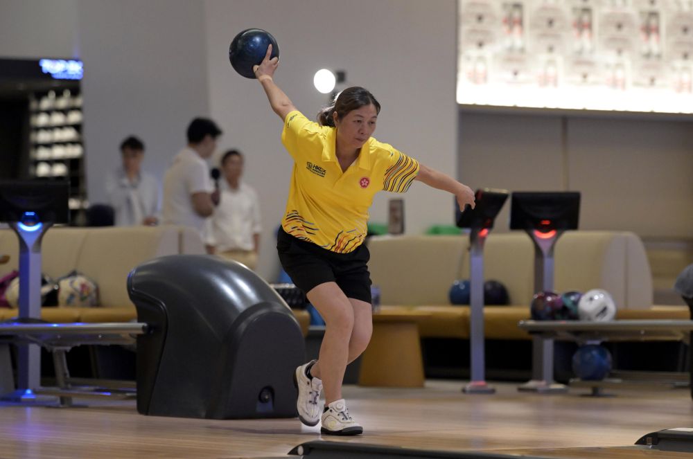 2025年8月11日,香港隊選手陳淑嫻在香港備戰(zhàn)第十五屆全運(yùn)會群眾比賽保齡球項目。新華社發(fā)(盧炳輝攝)