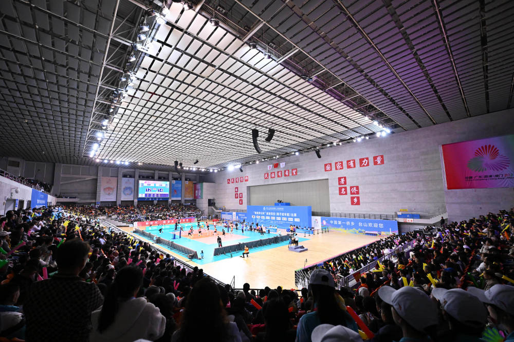 這是2025年11月20日拍攝的在廣東江門舉行的第十五屆全國運(yùn)動會排球男子成年組冠亞軍決比賽現(xiàn)場。新華社記者 李鑫 攝