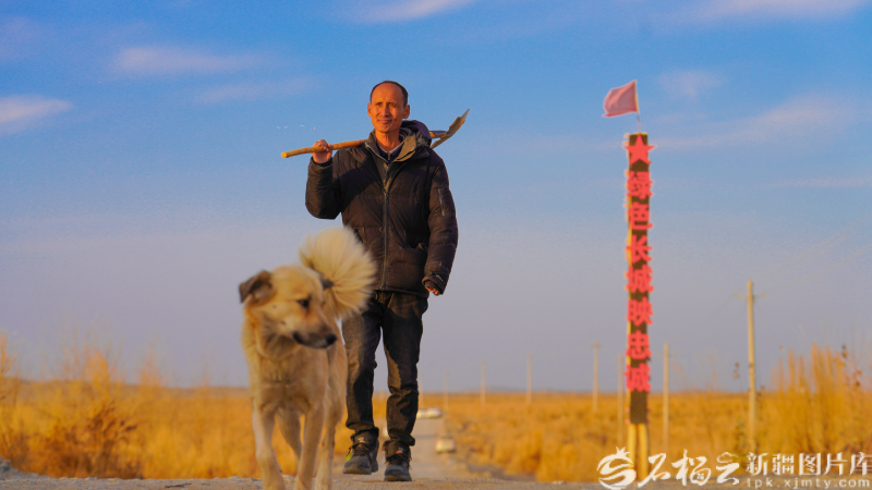 在塔克拉瑪干沙漠腹地的巴音郭楞蒙古自治州且末縣河?xùn)|治沙基地,且末縣老兵治沙隊(duì)隊(duì)長田野采挖肉蓯蓉歸來(資料圖)。