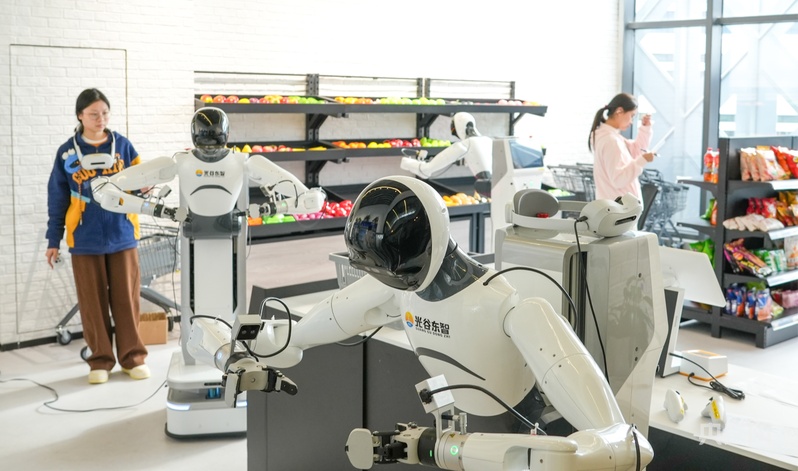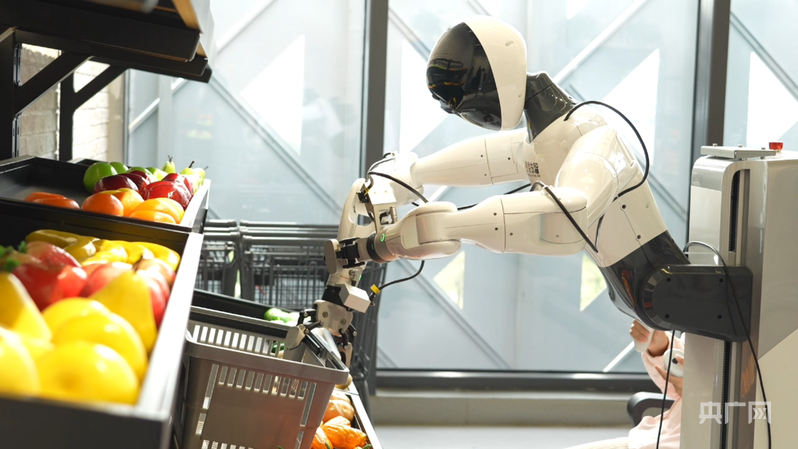 人形機器人在超市零售場景應(yīng)用訓(xùn)練(央廣網(wǎng)記者鄧子依 攝)