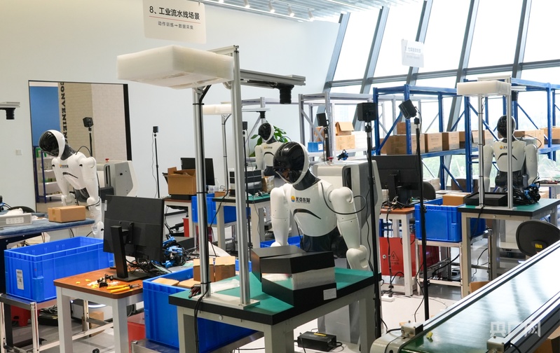 人形機器人在工業(yè)流水線場景中進行動作訓(xùn)練(央廣網(wǎng)記者鄧子依 攝)