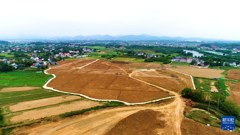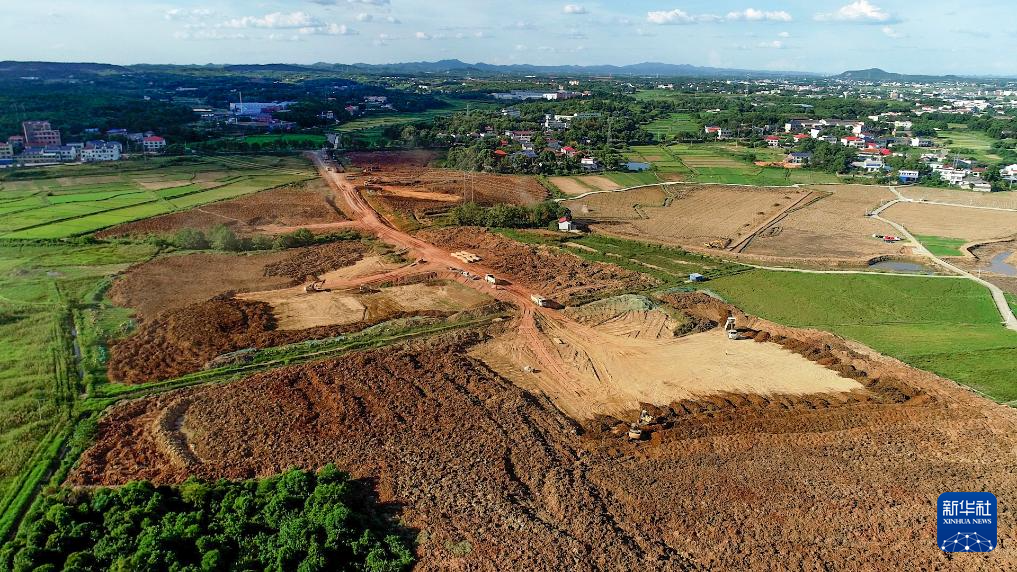 這是2022年8月31日拍攝的瀏陽市永安鎮(zhèn)豐裕村嚴(yán)格管控區(qū)地塊覆土作業(yè)現(xiàn)場(無人機(jī)照片)。新華社發(fā)(鄒禮卿 攝)