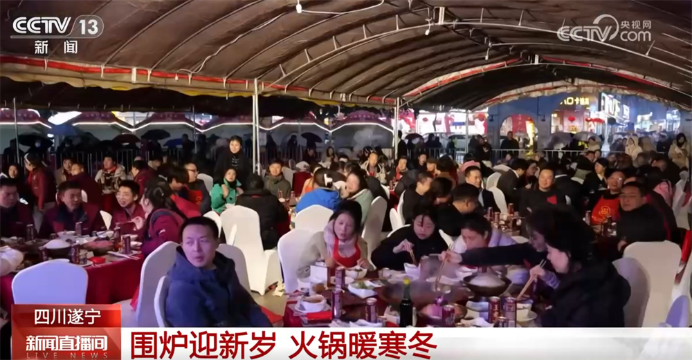 慶元旦、吃火鍋、迎新年。2025年12月31日晚,在四川遂寧市安居區(qū),火鍋美食節(jié)熱鬧舉行,大家齊聚一堂,一邊品嘗麻辣鮮香的特色火鍋,一邊欣賞精彩的文藝演出。