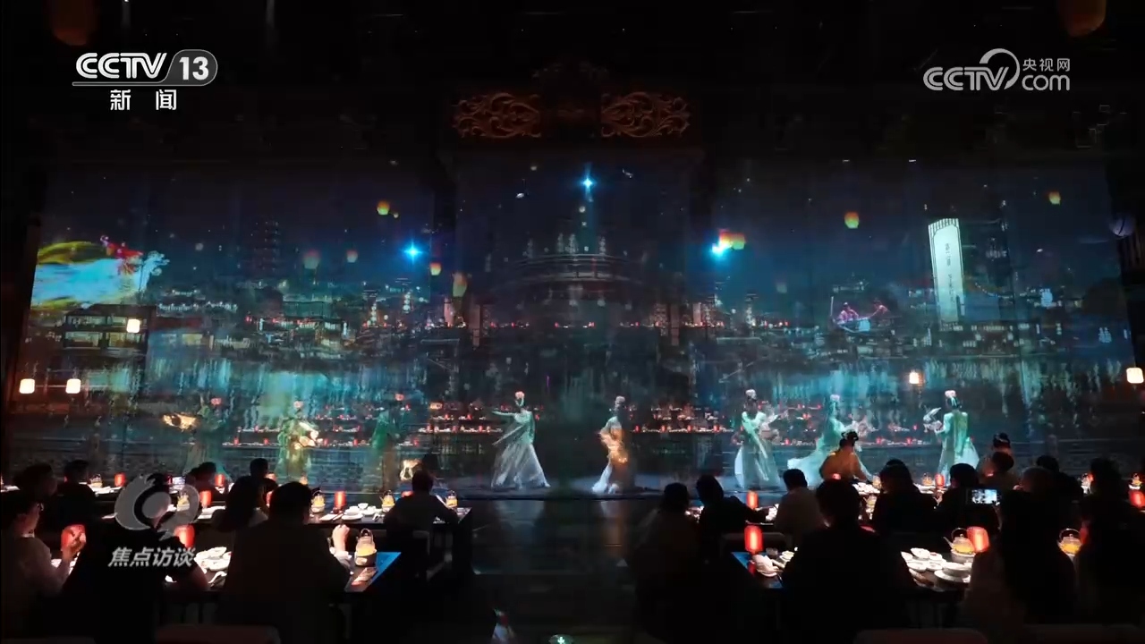 《清明上河·宋宴》是全國首個宋文化沉浸式餐秀,通過“宴席+演藝+科技”的創(chuàng)新形式,讓游客化身北宋汴京雅士,跟著宋代名人的腳步風雅入宴。