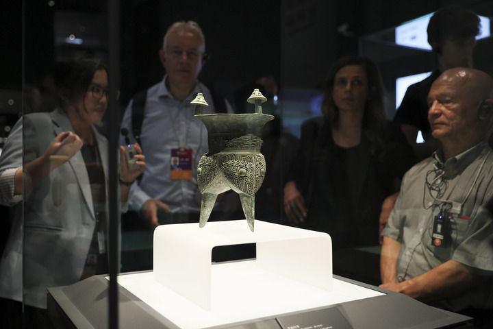 2025年10月13日,第二屆世界中國(guó)學(xué)大會(huì)“中國(guó)式現(xiàn)代化”主題參訪(fǎng)活動(dòng)嘉賓在上海博物館東館青銅館參觀(guān)。新華社記者 王翔 攝