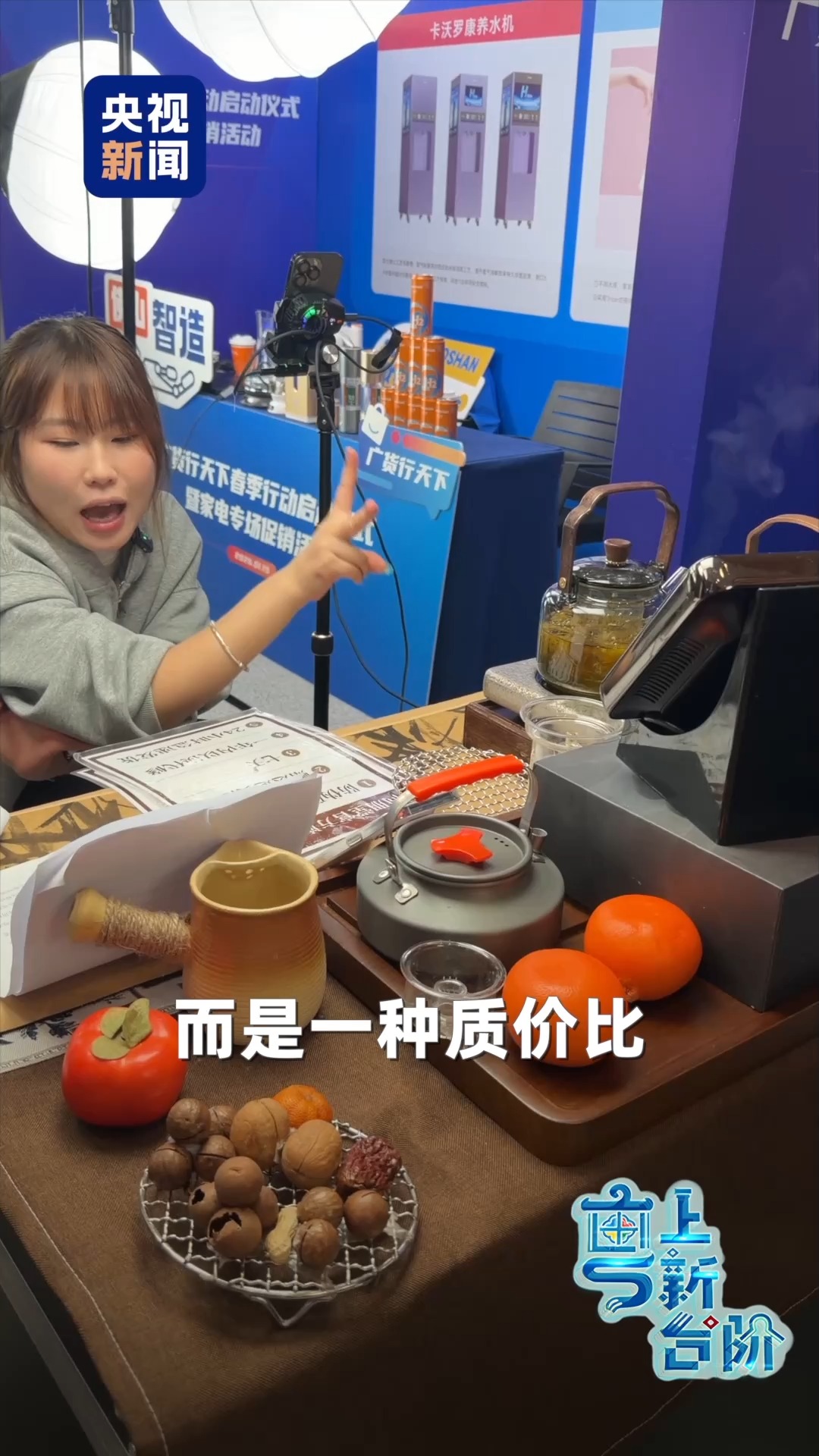 這次的活動現(xiàn)場,幾乎看不到琳瑯滿目的產(chǎn)品陳列,取而代之的是一臺臺手機,一個個熱鬧的直播間。